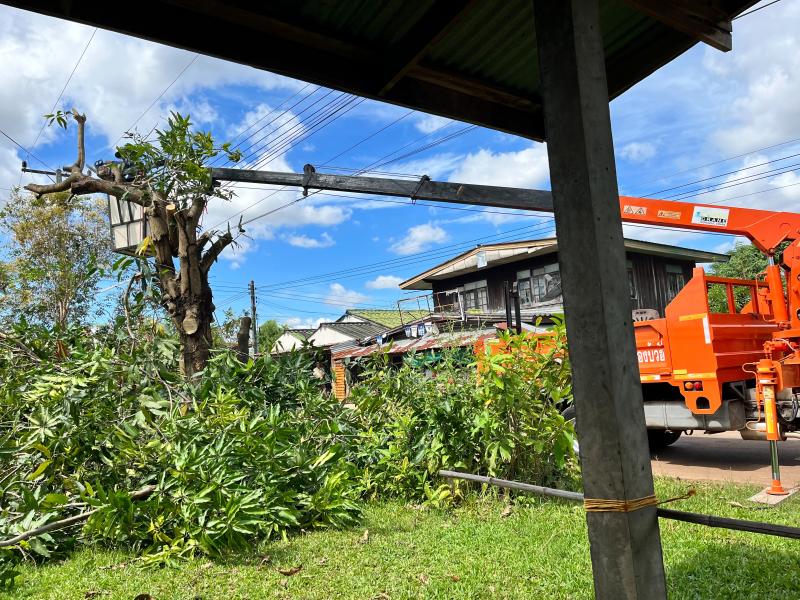ตัดกิ่งไม้ในวัด ชุมชน และโรงเรียนหนองกอก – นาหว้า