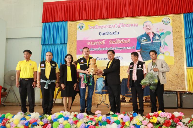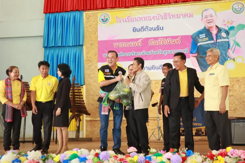 description นายแสนทวี ดาลาด นายกองค์การบริหารส่วนตำบลหนองบัวฮี พร้อมด้วยคณะผู้บริหาร หัวหน้าส่วนราชการ พนักงานเจ้าหน้าที่องค์การบริหารส่วนตำบลหนองบัวฮี ร่วมเป็นเกียรติต้อนรับการออกตรวจเยี่ยมจาก นายกานต์ กัลป์ตินันท์ นายกองค์การบริหารส่วนจังหวัดอุบลราชธานี เนื่องในโอกาสออกตรวจเยี่ยมโรงเรียนในสังกัดองค์การบริหารส่วนจังหวัดอุบลราชธานี ณ หอประชุมโรงเรียนหนองบัวฮีวิทยาคม อำเภอพิบูลมังสาหาร จังหวัดอุบลราชธานี person admin