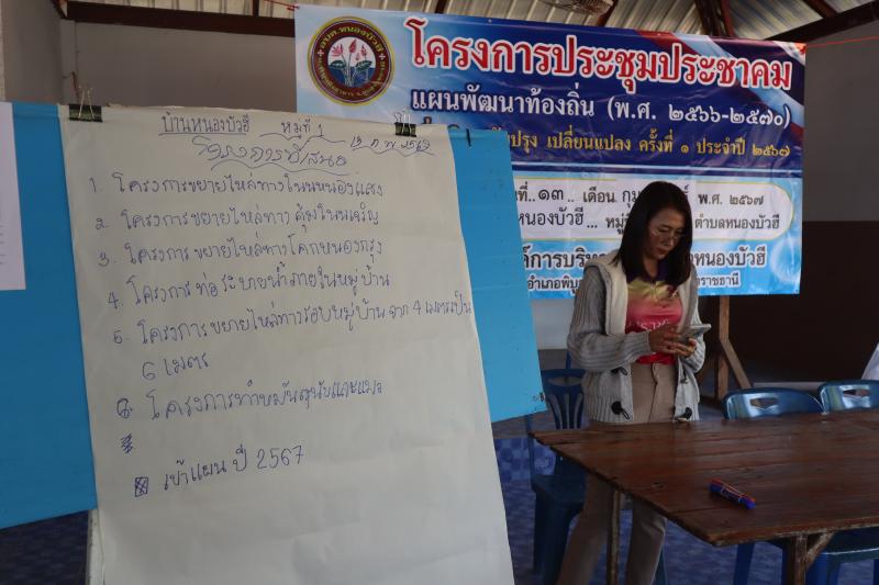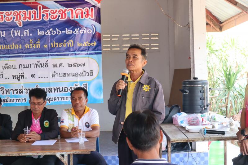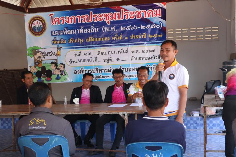 ประชุมประชาคมแผนพัฒนาท้องถิ่น (พ.ศ. 2566 – 2570) เพิ่มเติม ปรับปรุงเปลี่ยนแปลง ครั้งที่ 1 ประจำปี 2567 ณ บ้านหนองบัวฮี หมู่ที่ 1