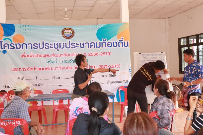 description ายสัญญา โพธิ์พรม นายกองค์การบริหารส่วนตำบลหนองบัวฮี มอบหมายให้ นายสมพร บุญเต็ม รององค์การบริหารส่วนตำบลหนองบัวฮี เป็นประธานในการประชุมประชาคมแผนพัฒนาท้องถิ่น พร้อมด้วย นางจุไลลักษณ์ วงค์วรรณ เลขานุการนายก อบต. กำนัน/ผู้ใหญ่บ้าน ส.อบต. ส่วนราชการในพื้นที่ หัวหน้าส่วนราชการ เจ้าหน้าที่ผู้เกี่ยวข้องและประชาชน บ้านหนองสองห้อง หมู่ที่ 12 ร่วมประชุมประชาคมแผนพัฒนาท้องถิ่น โดยมีวัตถุประสงค์ ดังนี้ 1.เพื่อเปิดโอกาสให้ประชาชนมีส่วนร่วมในการจัดทำแผนพัฒนา 2.เพื่อประเมินผลการดำเนินงานของท้องถิ่นโดยรับฟังความคิดเห็นจากประชาชนมาปรับปรุงการบริหารงาน การแก้ไขปัญหาและการตอบสนองความต้องการของประชาชน 3.เพื่อให้ผู้บริหาร/สมาชิกสภาฯ/เจ้าหน้าที่ได้พบปะประชาชนในแต่ละหมู่บ้าน 4.เพื่อแสดงความสัมพันธ์เชื่อมโยงและสอดคล้องกันระหว่างแผนพัฒนาและการจัดทำงบประมาณประจำปี 5.เพื่อเตรียมโครงการพัฒนาต่างๆให้อยู่ในลักษณะที่พร้อมจะบรรจุในเอกสารงบประมาณประจำปี และนำไปปฏิบัติได้ทันทีเมื่อได้รับงบประมาณ 6.เพื่อนำข้อสรุป ปัญหาความต้องการของประชาชนจากเวทีประชาคมมาพิจารณาบรรจุไว้ในแผนพัฒนา ณ ศาลาประชาคมบ้านหนองสองห้อง หมู่ที่ 12 person admin