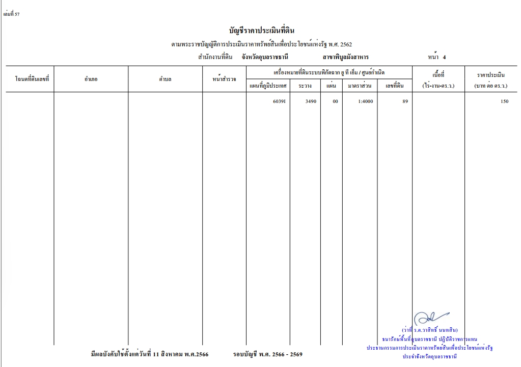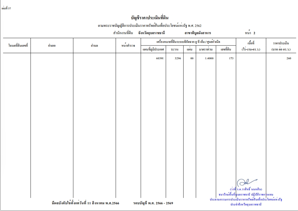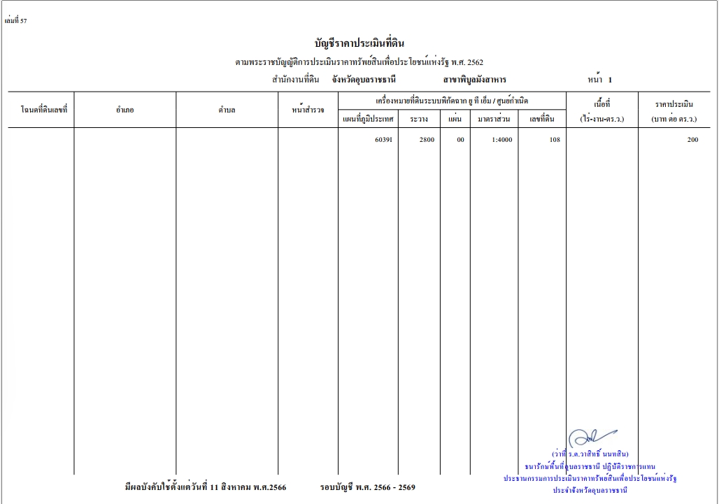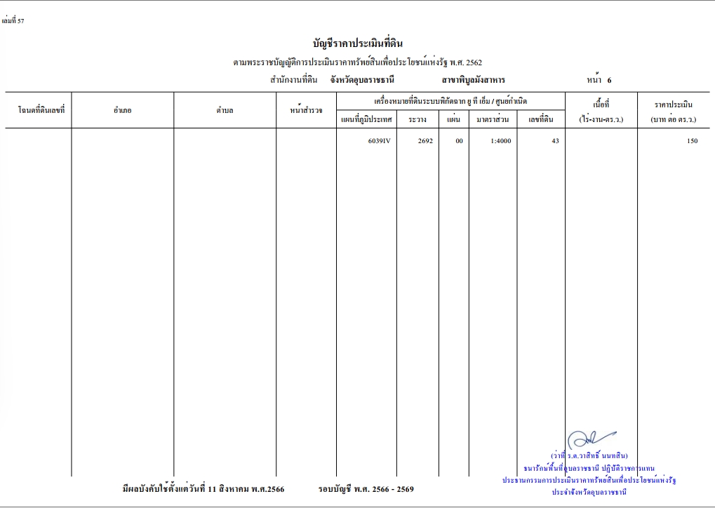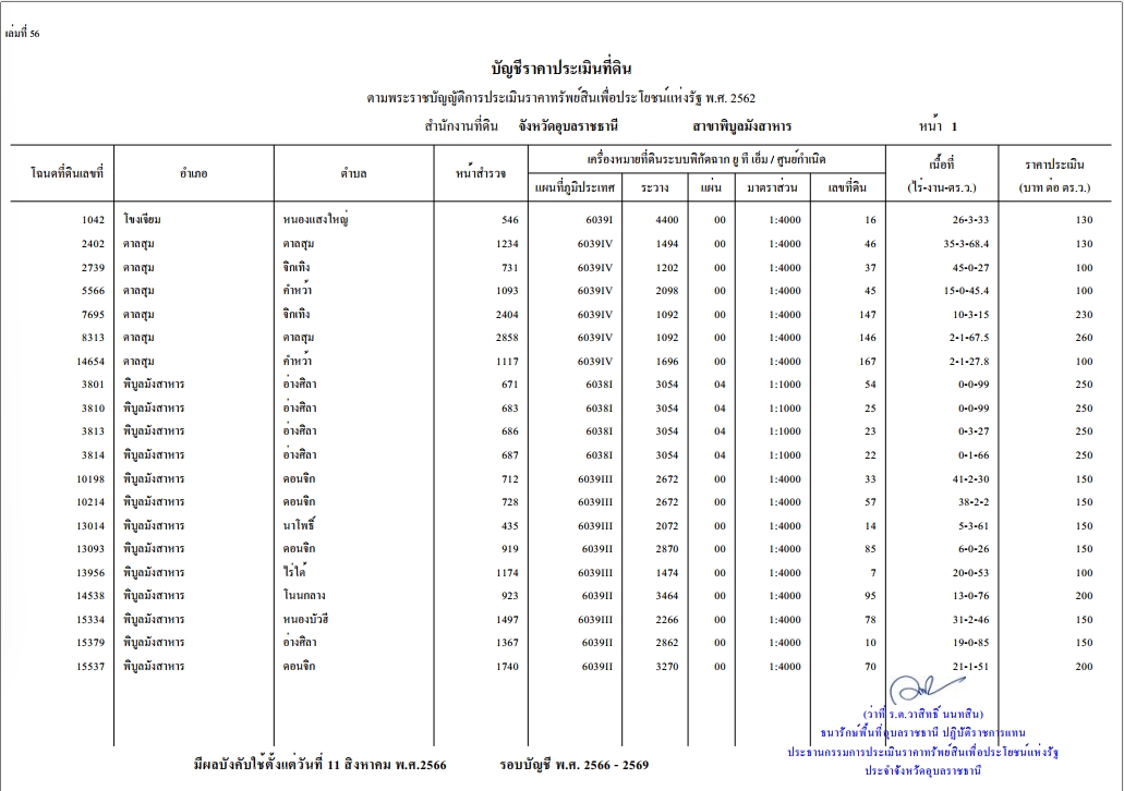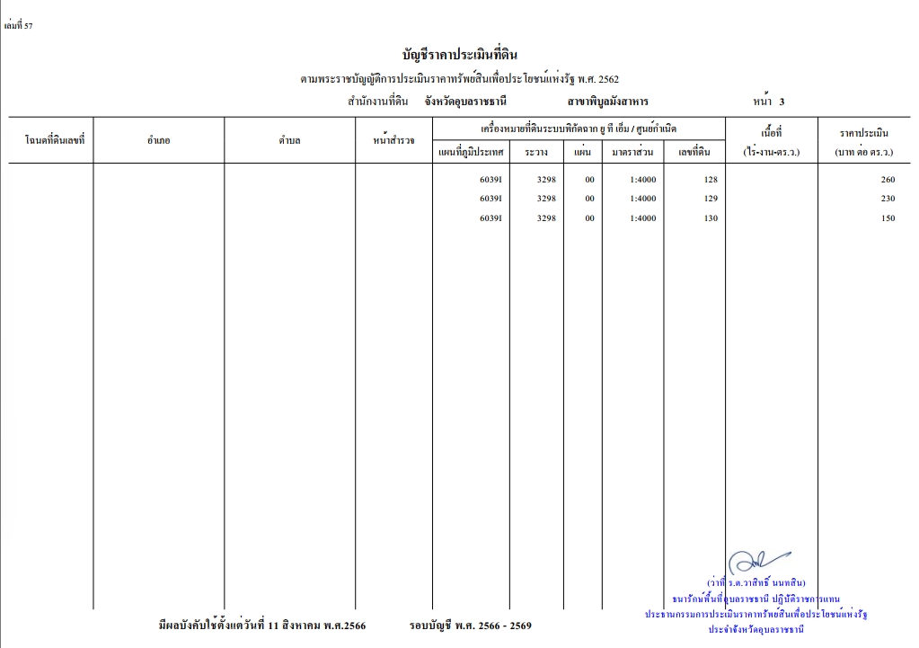 ประกาศคณะกรรมการประเมินราคาทรัพย์สินเพื่อประโยชน์แห่งรัฐประจำจังหวัดอุบลราชธานี เรื่อง บัญชีราคาประเมินที่ดินและแผนที่ประกอบการประเมินราคาที่ดิน รอบบัญชี พ.ศ. 2566 - 2569 (เพิ่มเติม) ตามพระราชบัญญัติการประเมินราคาทรัพย์สินเพื่อประโยชน์แห่งรัฐ พ.ศ. 2562