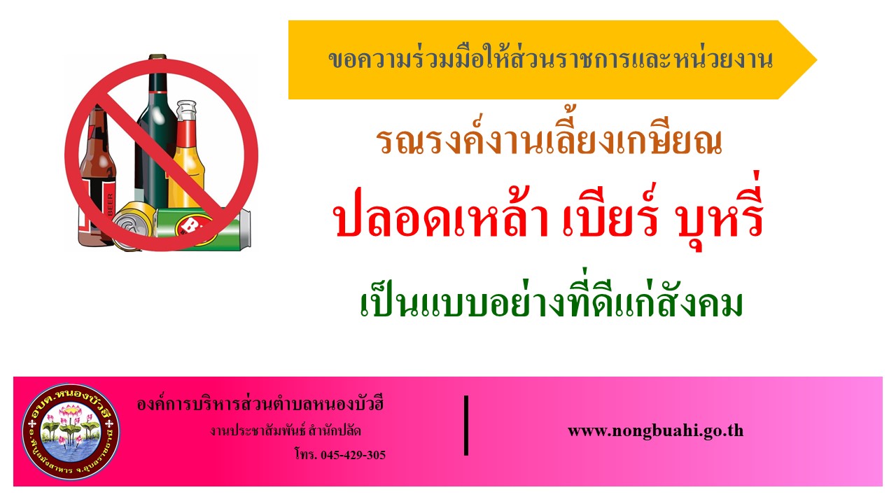 ในการนี้องค์การบริหารส่วนตำบลหนองบัวฮี ขอร่วมรณรงค์งานเลี้ยงเกษียณปลอดเหล้า เบียร์ บุหรี่ เพื่อเป็นแบบอย่างที่ดีแก่สังคม