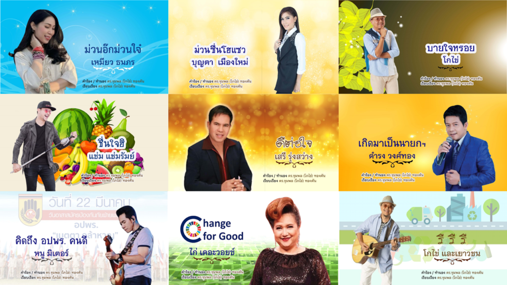 บทเพลงกระทรวงมหาดไทย เกี่ยวกับบทบาทภารกิจของกระทรวงมหาดไทย จำนวน 9 เพลง เพื่อส่งเสริมภาพลักษณ์ที่ดีของกระทรวงมหาดไทย