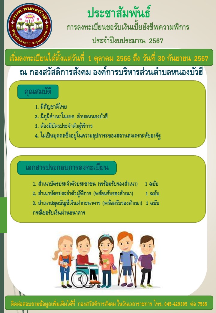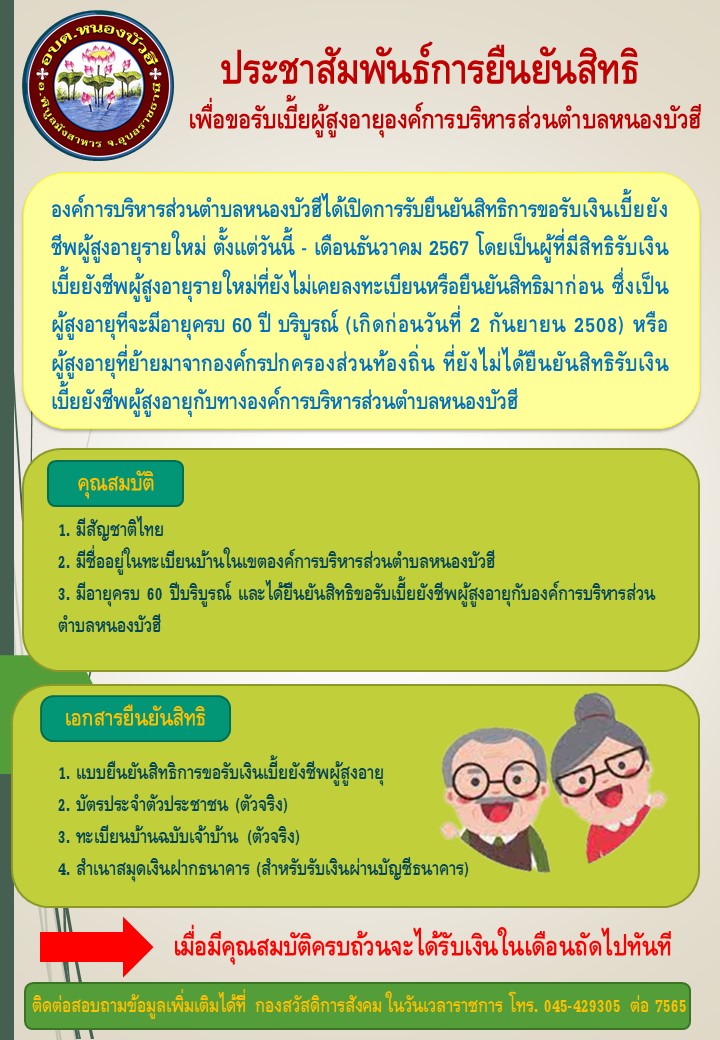 ประชาสัมพันธ์ - การยืนยันสิทธิ เพื่อขอรับเบี้ยผู้สูงอายุองค์การบริหารส่วนตำบลหนองบัวฮี - การลงทะเบียนขอรับเงินเบี้ยยังชีพความพิการ