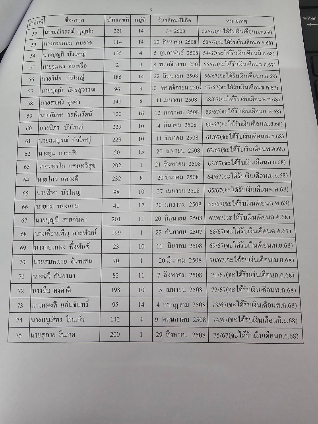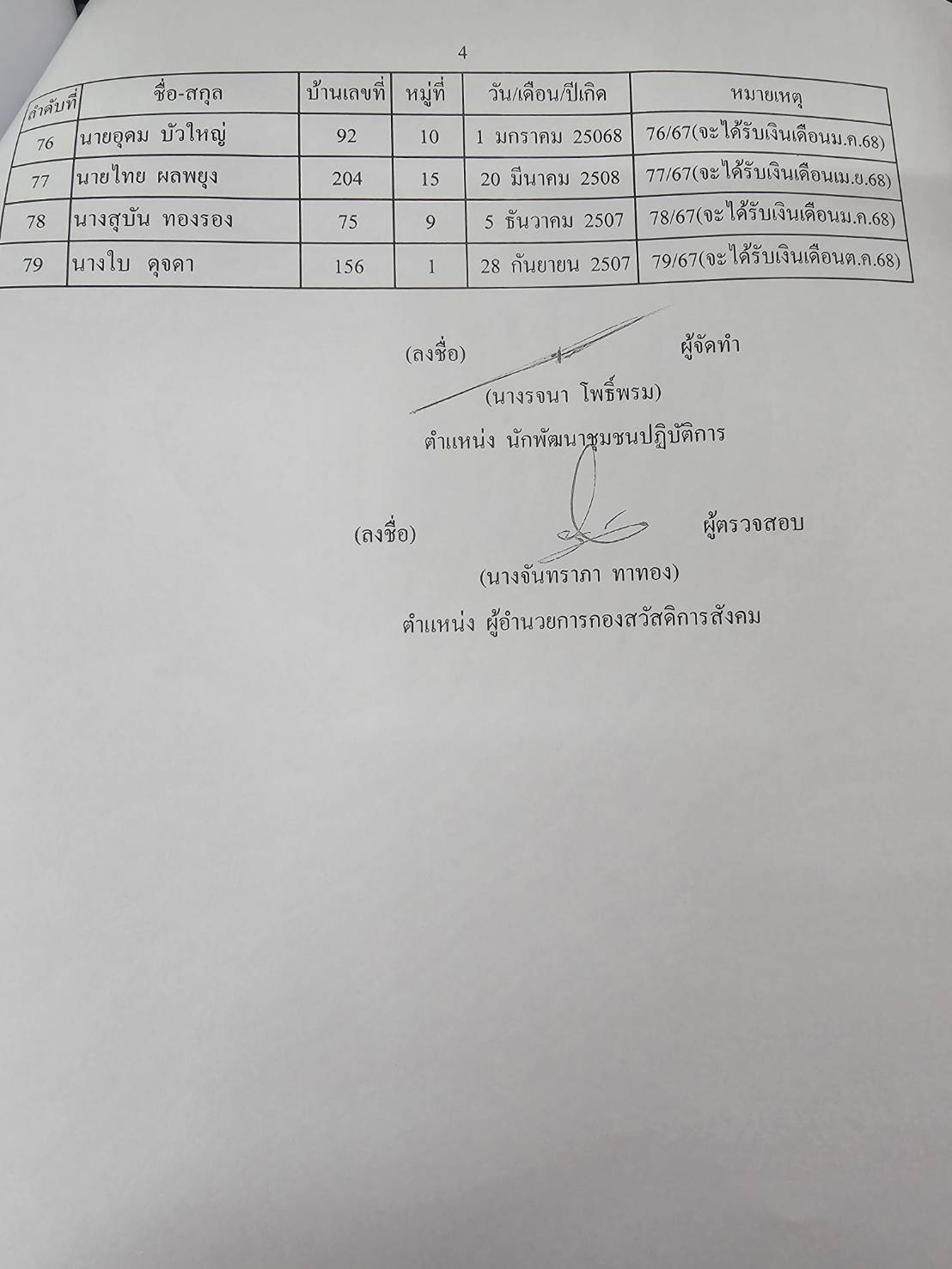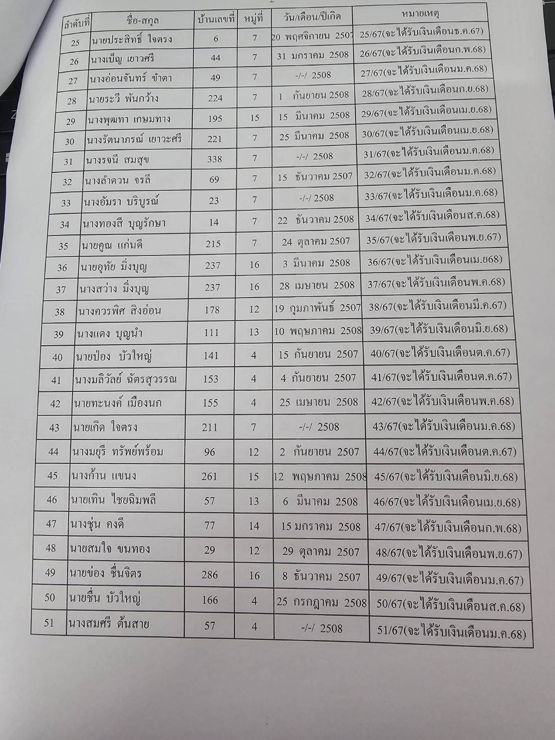 - บัญชีรายชื่อผู้มีสิทธิรับเงินเบี้ยยังชีพผู้สูงอายุขององค์การบริหารส่วนตำบลหนองบัวฮี ประจำปีงบประมาณ พ.ศ. 2568 ประจำเดือน ตุลาคม 2566