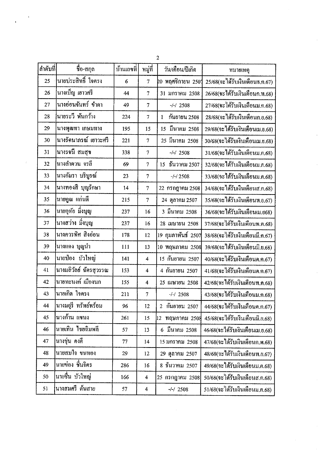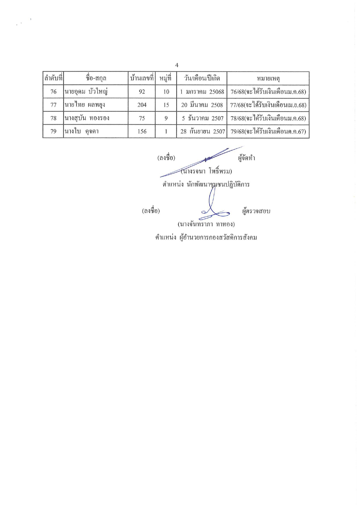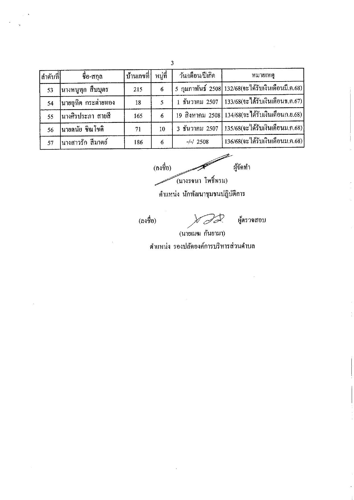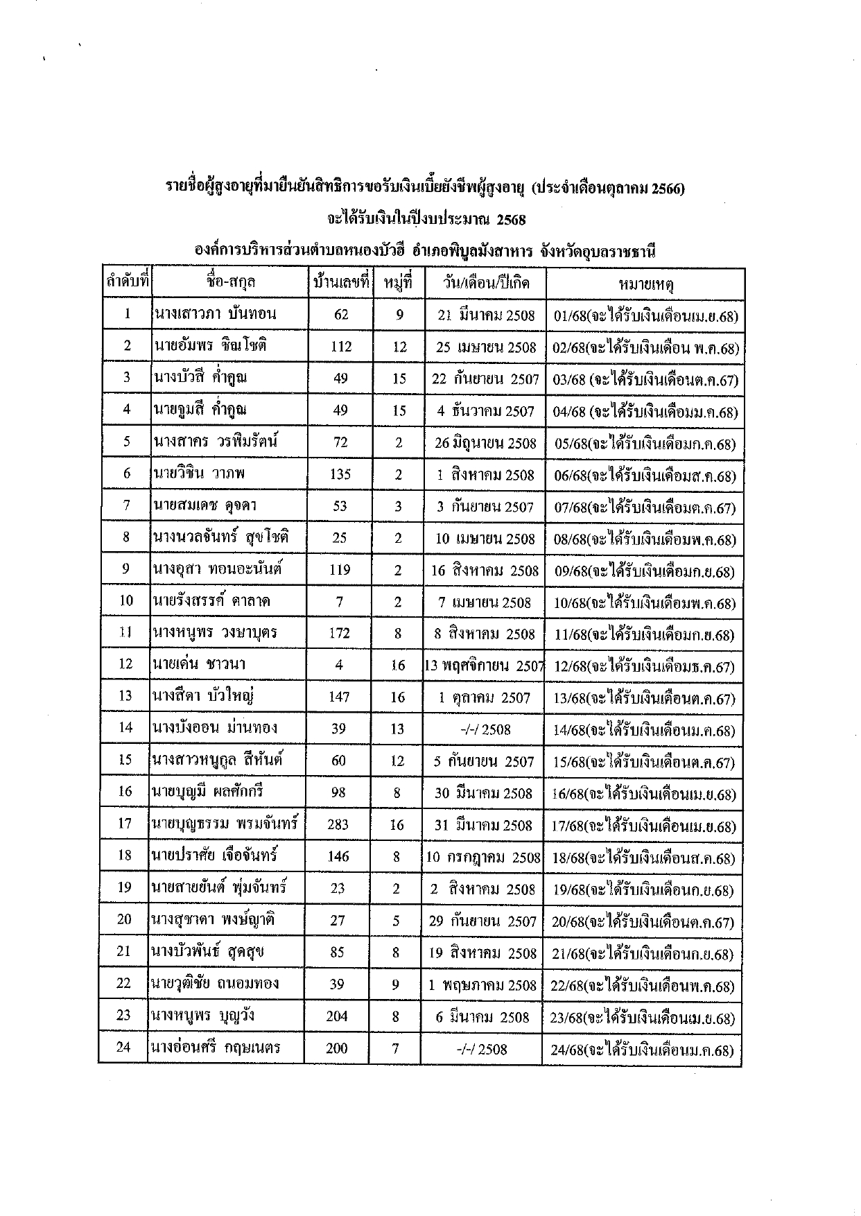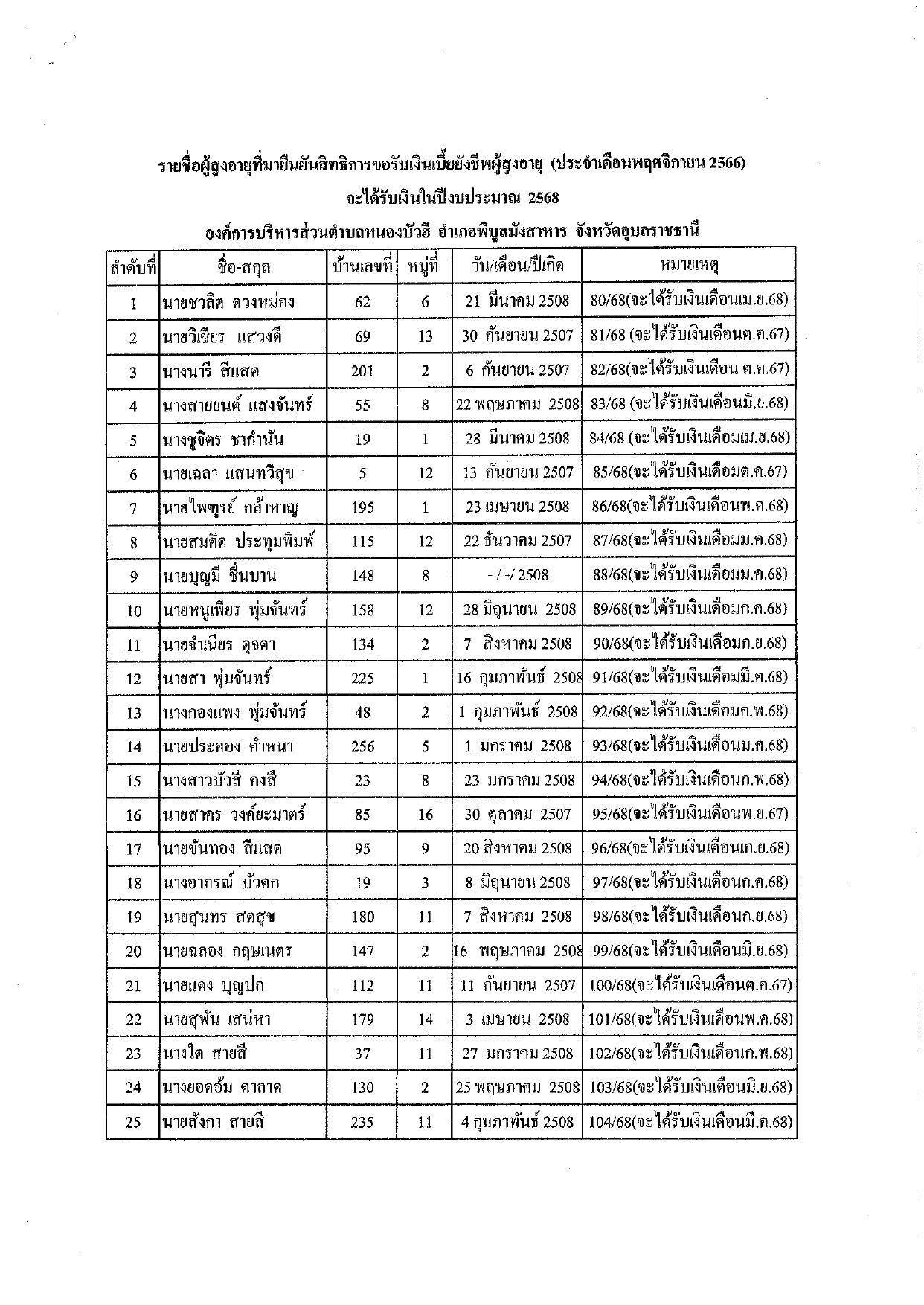 - บัญชีรายชื่อผู้มีสิทธิรับเงินเบี้ยยังชีพผู้สูงอายุขององค์การบริหารส่วนตำบลหนองบัวฮี ประจำปีงบประมาณ พ.ศ.2568 (ประจำเดือนพฤศจิกายน 2566)