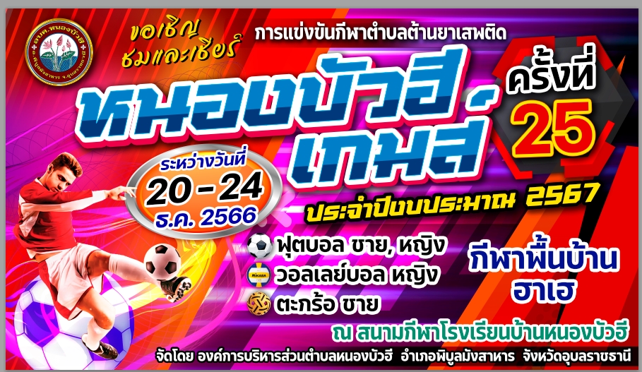 ระหว่างวันที่ 20-24 ธันวาคม 2566 ณ สนามกีฬาโรงเรียนบ้านหนองบัวฮี