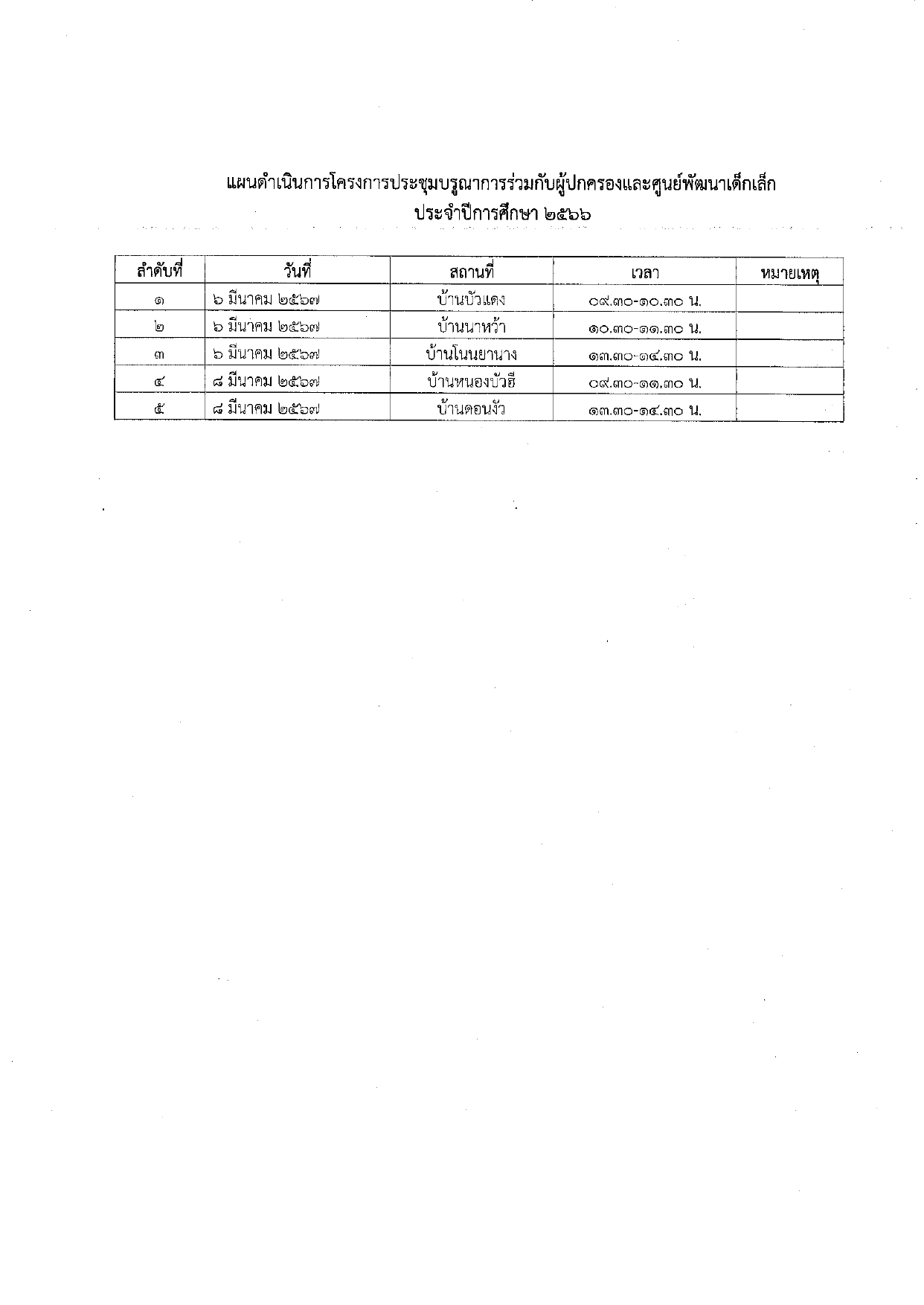 แผนดำเนินการโครงการประชุมบูรณาการร่วมกับผู้ปกครองและศูนย์พัฒนาเด็กเล็ก ประจำปีการศึกษา 2566