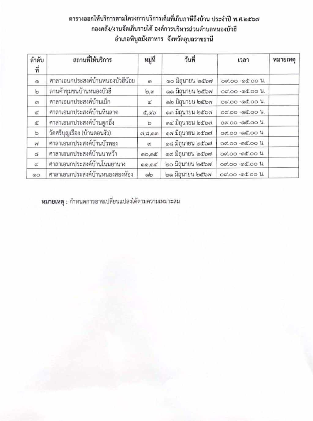 ✅✅ ประชาสัมพันธ์ แผนการออกให้บริการตามโครงการบริการเต็มที่เก็บภาษี ถึงบ้าน ประจำปี 2567 กำหนดวัน เวลา และสถานที่ตามตารางด้านล่างค่ะ