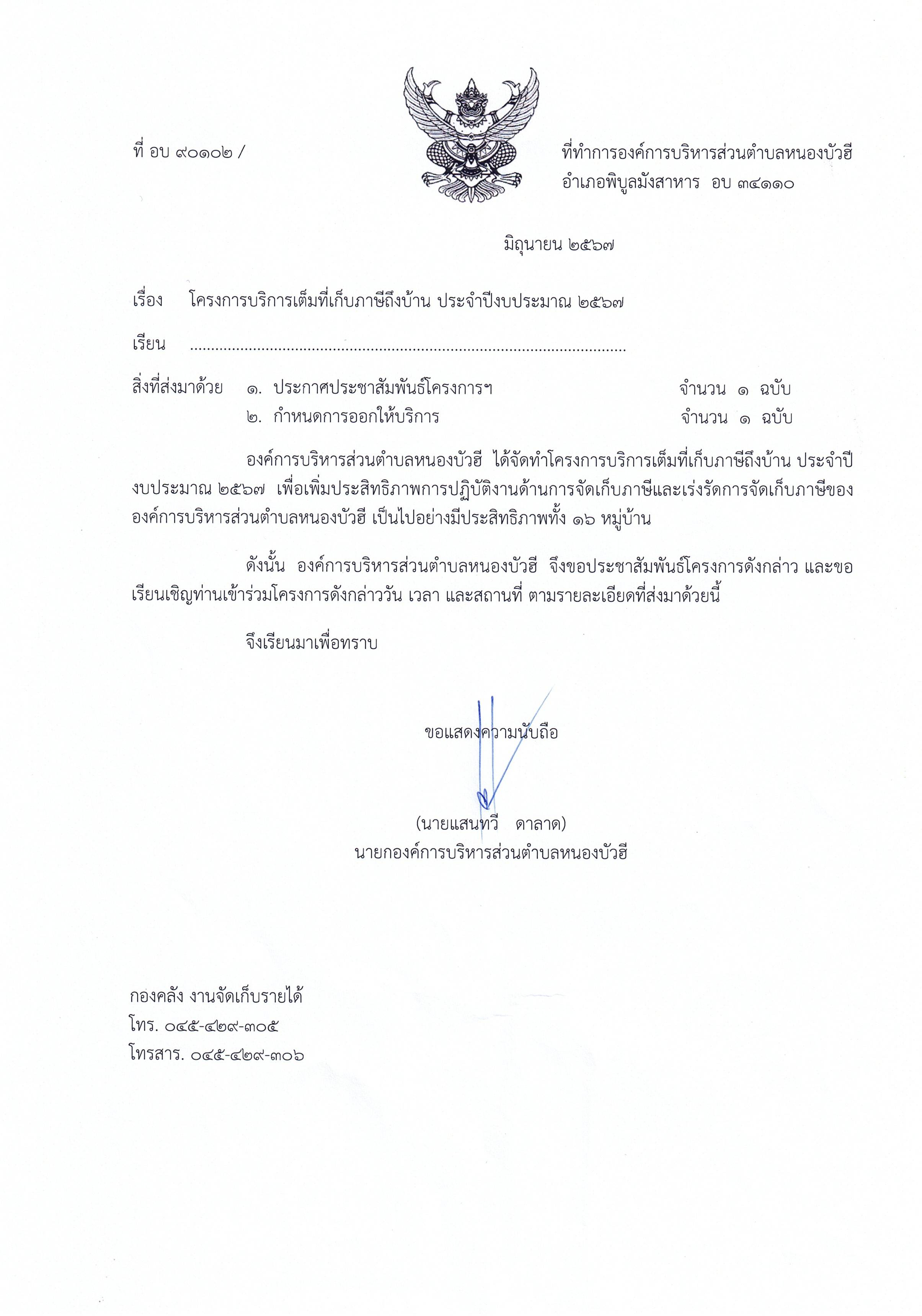ประชาสัมพันธ์โครงการบริการเต็มที่เก็บภาษีถึงบ้าน ประจำปี 2567