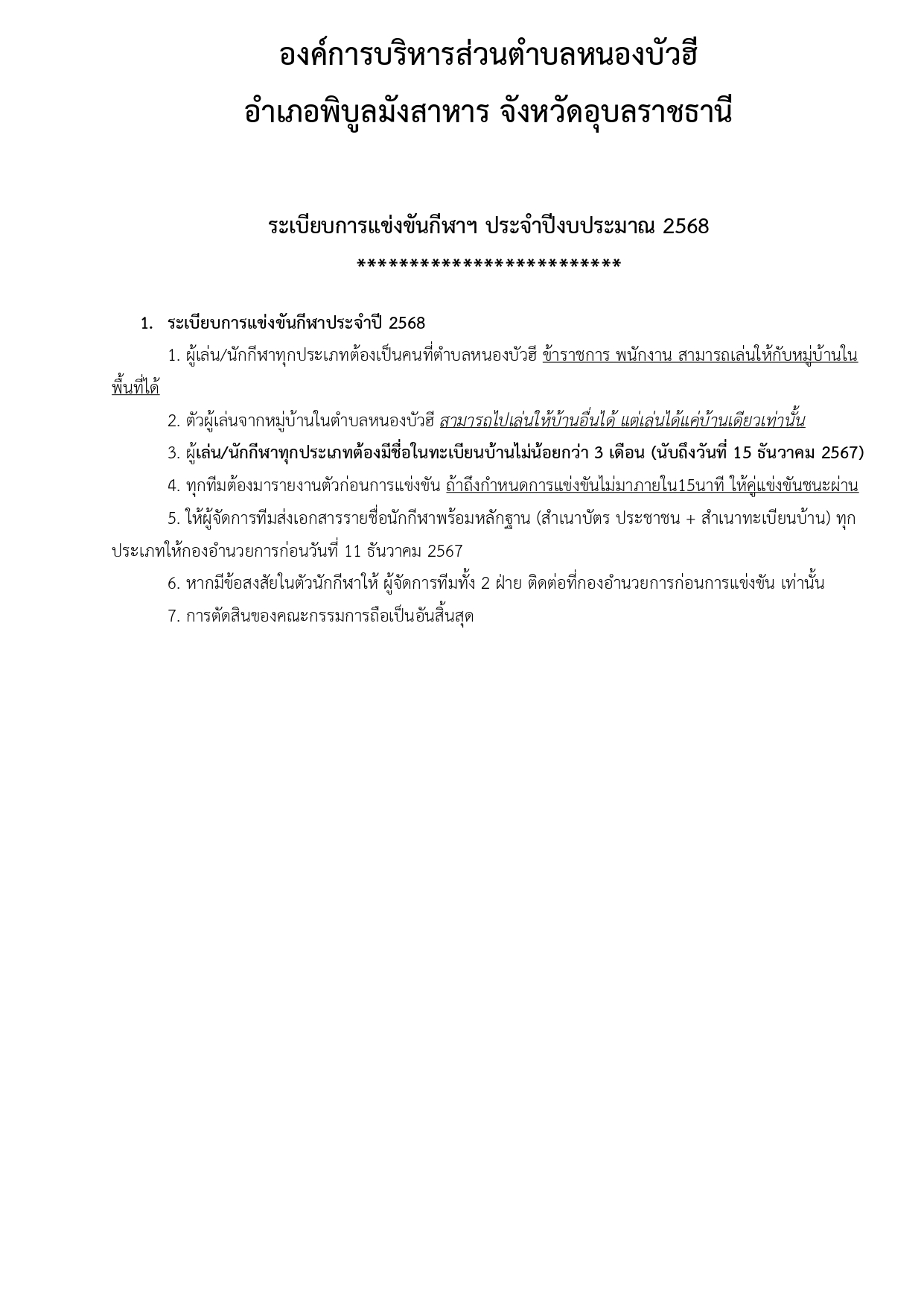 สูจิบัตรการแข่งขันกีฬาตำบลต้านยาเสพติด “หนองบัวฮี เกมส์ ครั้งที่ 26” ประจำปีงบประมาณ 2568