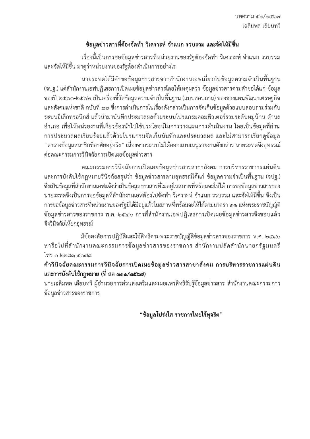 2. บทความ 52/2567 ข้อมูลข่าวสารที่ต้องจัดทำ วิเคราะห์ จำแนก รวบรวม และจัดให้มีขึ้น