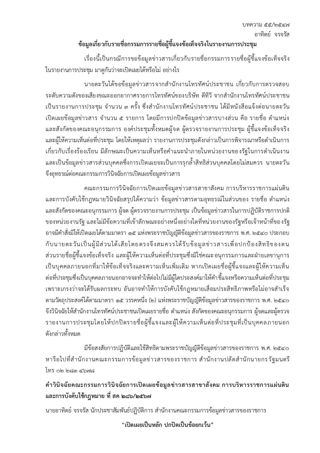 5. บทความ 55/2567 ข้อมูลเกี่ยวกับรายชื่อกรรมการรายชื่อผู้แจงข้อเท็จจริงในรายงานการประชุม