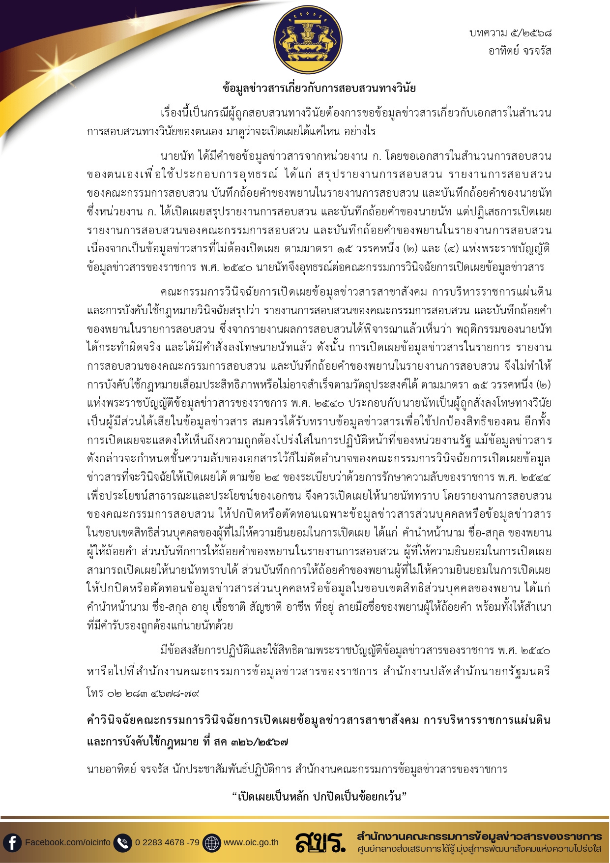 5. บทความ 5/2568 ข้อมูลข่าวสารเกี่ยวกับการสอบสวนทางวินัย