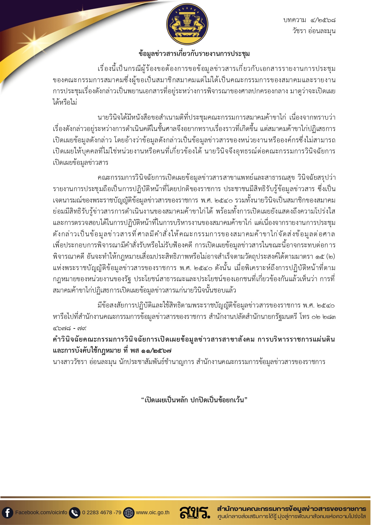 4/2568 ข้อมูลข่าวสารเกี่ยวกับรายงานการประชุม