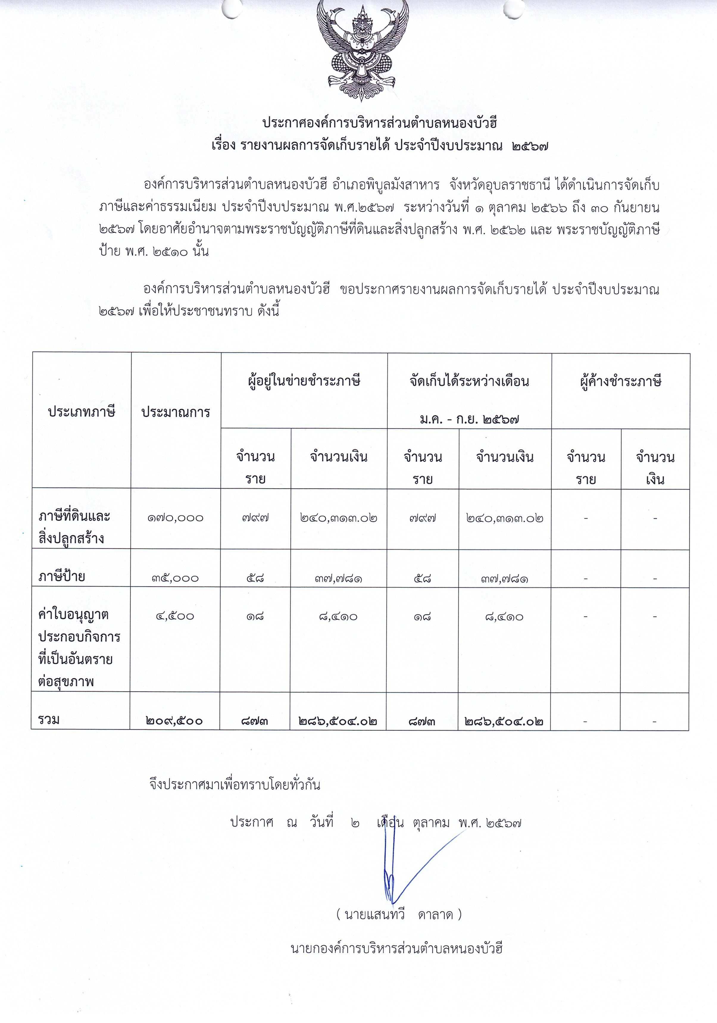 รายงานผลการจัดเก็บภาษี ประจำปี 2567