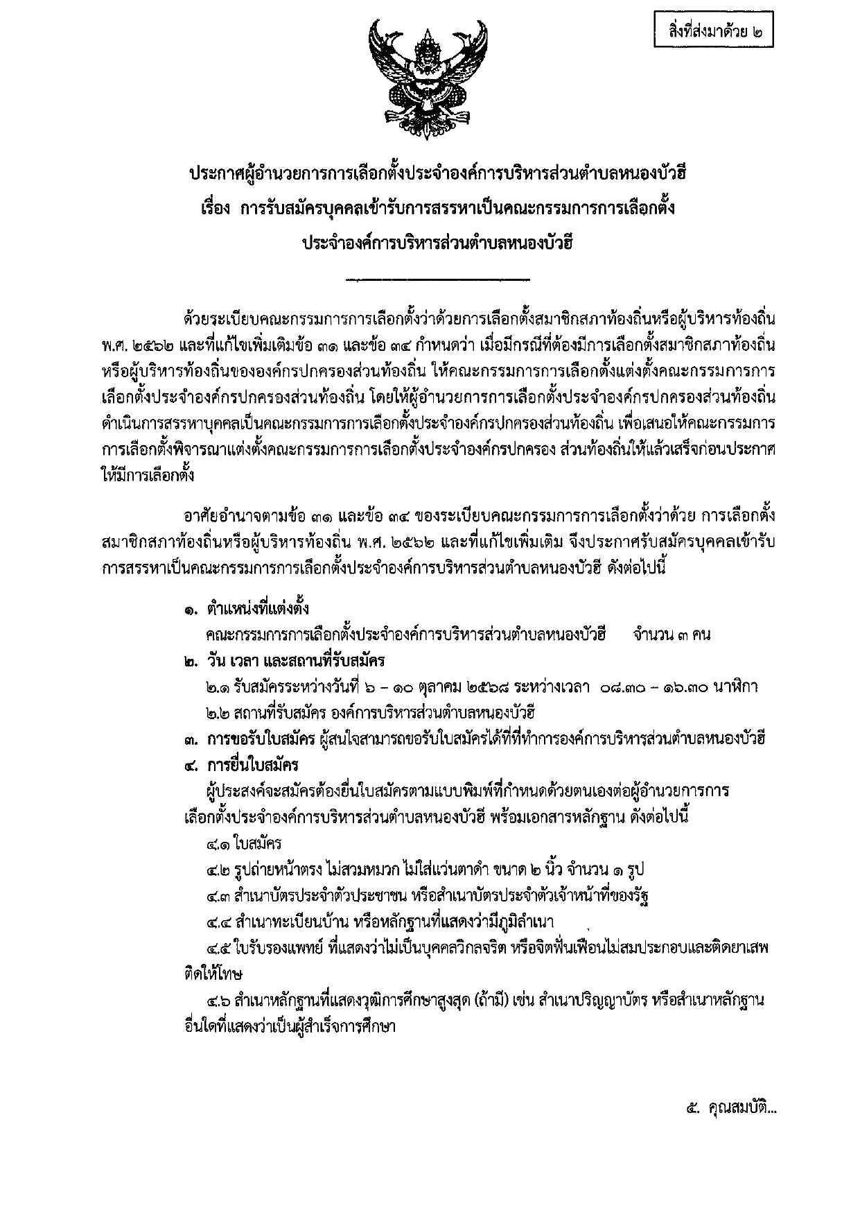 ประกาศผู้อำนวยการการเลือกตั้งประจำองค์การบริหารส่วนตำบลหนองบัวฮี เรื่อง การรับสมัครบุคคลเข้ารับการสรรหาเป็นคณะกรรมการการเลือกตั้ง ประจำองค์การบริหารส่วนตำบลหนองบัวฮี