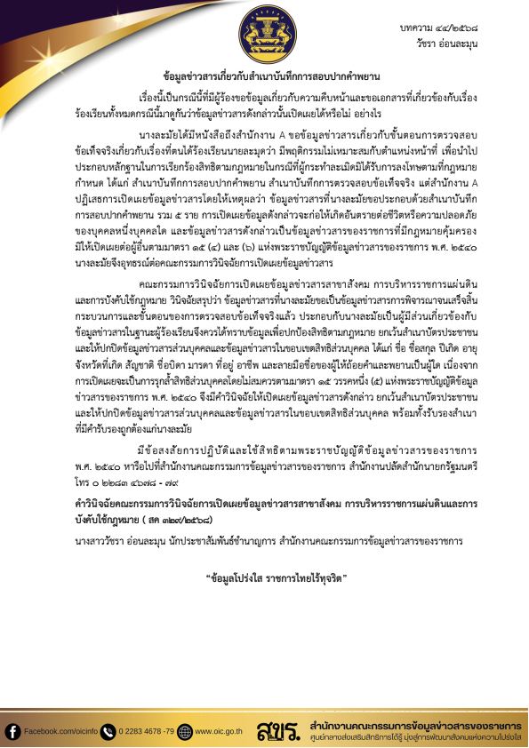 ๔) ข้อมูลข่าวสารเกี่ยวกับสำเนาบันทึกการสอบปากคำพยาน