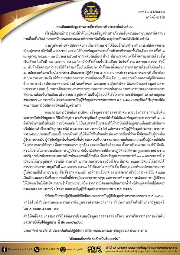๕) ข้อมูลข่าวสารเกี่ยวกับการพิจารณาขั้นเงินเดือน