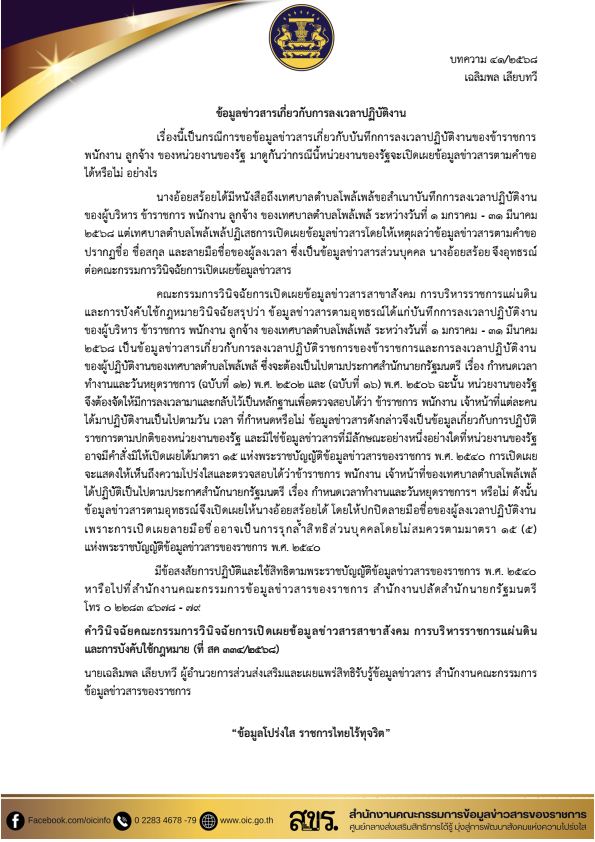๑) ข้อมูลข่าวสารเกี่ยวกับการลงเวลาปฏิบัติงาน